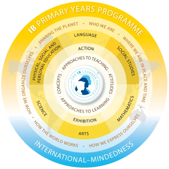 The IB Primary Years Programme, for students aged 3 to 12 (early and Primary Years), focuses on the development of the whole child as an inquirer, both in the classroom and in the world outside. It is a framework guided by six transdisciplinary themes of global significance, explored using knowledge and skills derived from six subjects' areas, as well as transdisciplinary skills, with a powerful emphasis on inquiry.